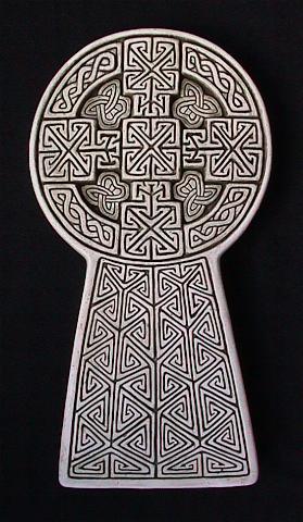 labyrinth and Celtic knotwork patterns throughout the cross. The